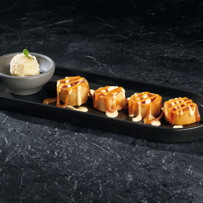 Agrega 1 postre individual Banana Spring Roll 286.67 Kcal. con costo extra C/U